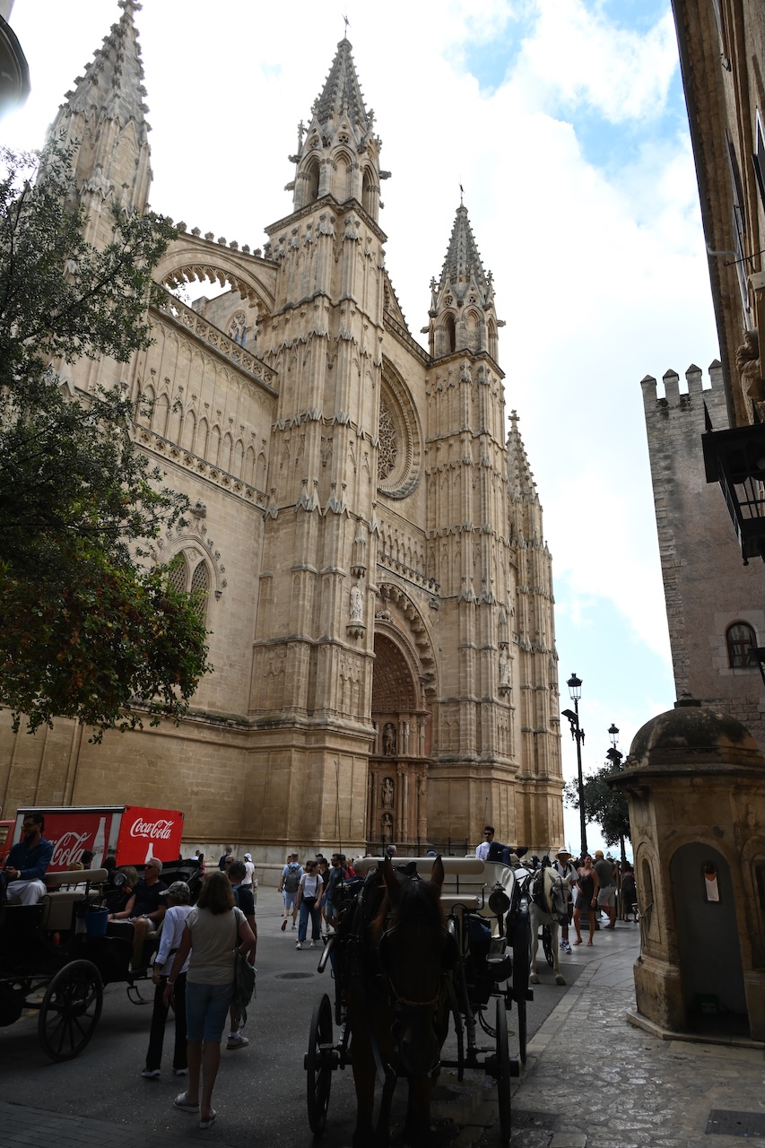 Wanneer je de hoofdstad bezoekt, kan je niet naast de statige, imposante kathedraal kijken. We hadden enkele dagen geleden al ticketjes gekocht om dit indrukwekkende bouwwerk ook aan de binnenkant te gaan bekijken, dus dat gaan we vandaag zeker doen. Gezien parkeerplekken niet zo makkelijk te vinden zijn, vertrekken we vanuit ‘ons’ dorp met de bus naar Palma. Uiteraard zijn we niet de enigen die dat idee hadden en de bus zit goed vol. Zonder problemen komen we echter in het hart van Palma toe en kunnen we aan de stadswandeling beginnen die we een paar dagen ervoor hadden samengesteld en die ons ook langs de kathedraal zal brengen.